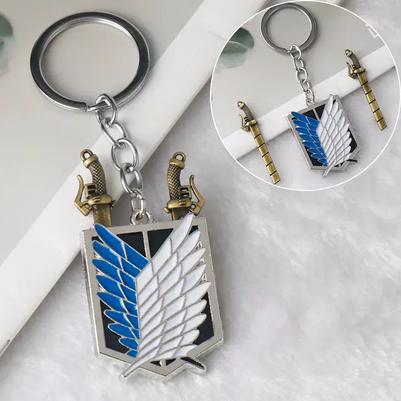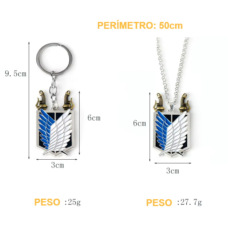 Mostre seu orgulho como verdadeiro membro da Tropa de Exploração (Scouting Legion) com este incrível conjunto de colar e chaveiro metálico, detalhado com o icônico emblema das Asas da Liberdade.