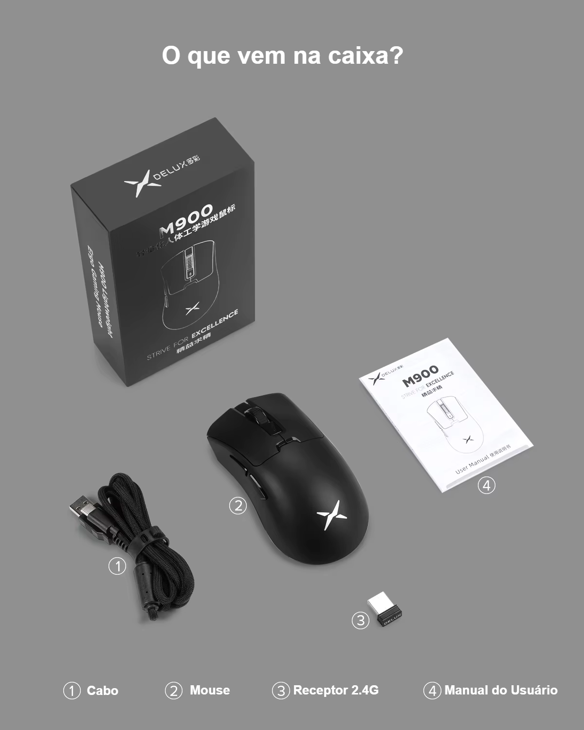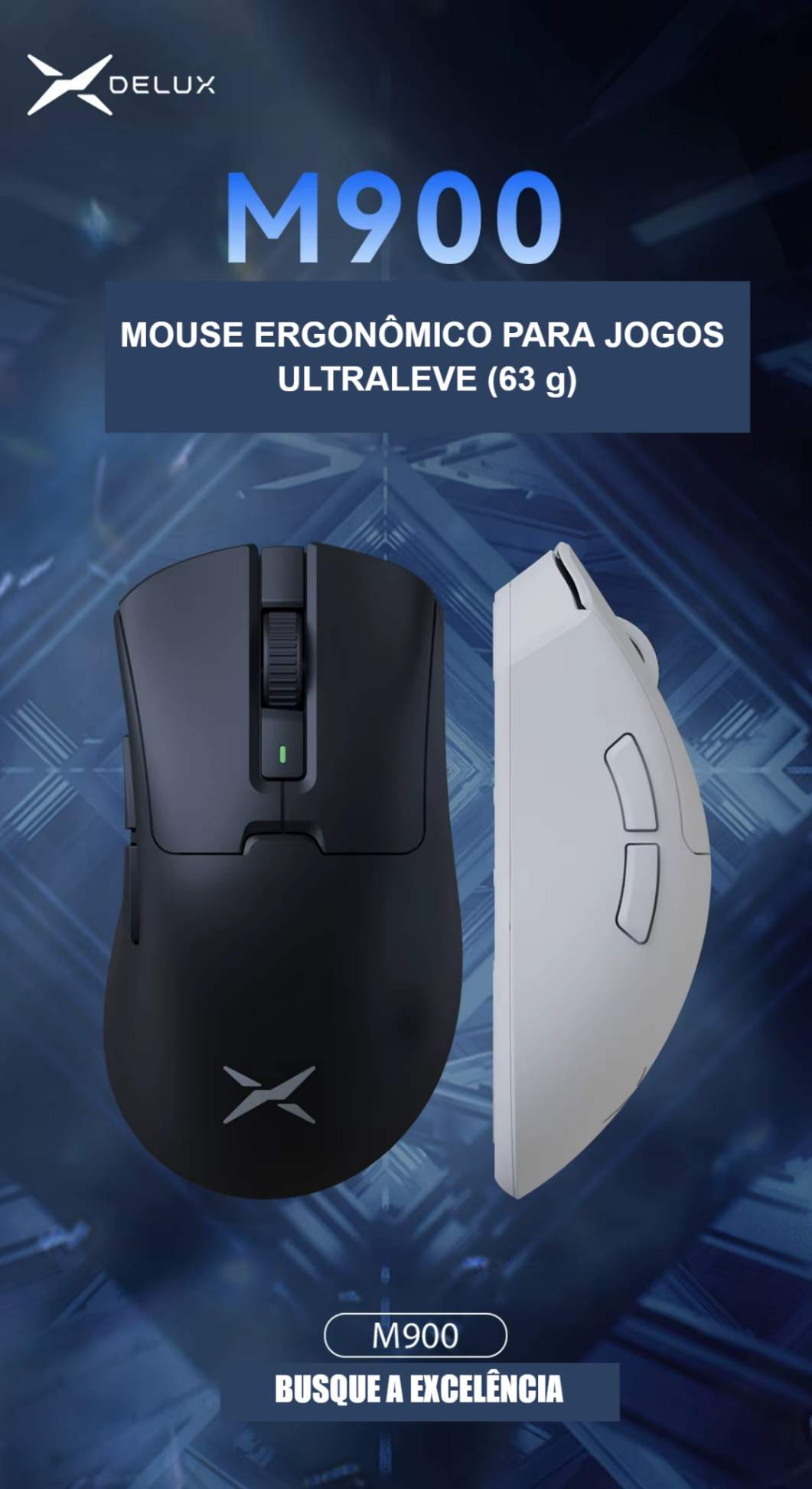 Com design ergonômico para destros, conexão sem fio estável e bateria recarregável integrada, o Delux une tecnologia, conforto e estilo em um único dispositivo.