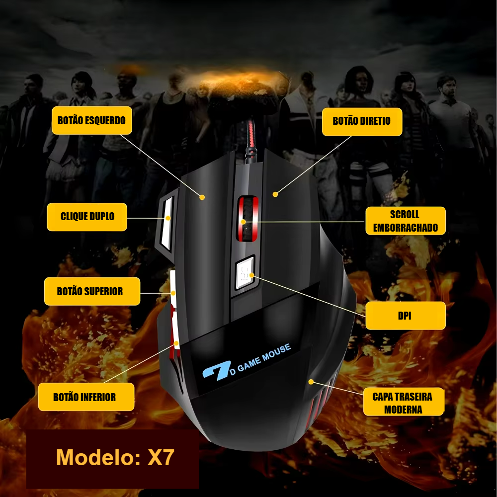 Se você busca desempenho, estilo e durabilidade, o Mouse Gamer X7 é a escolha perfeita.